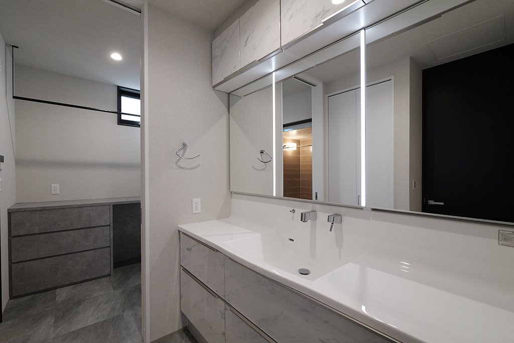 カラーコンセプトは水廻り設備や照明器具にまで及んでいます。