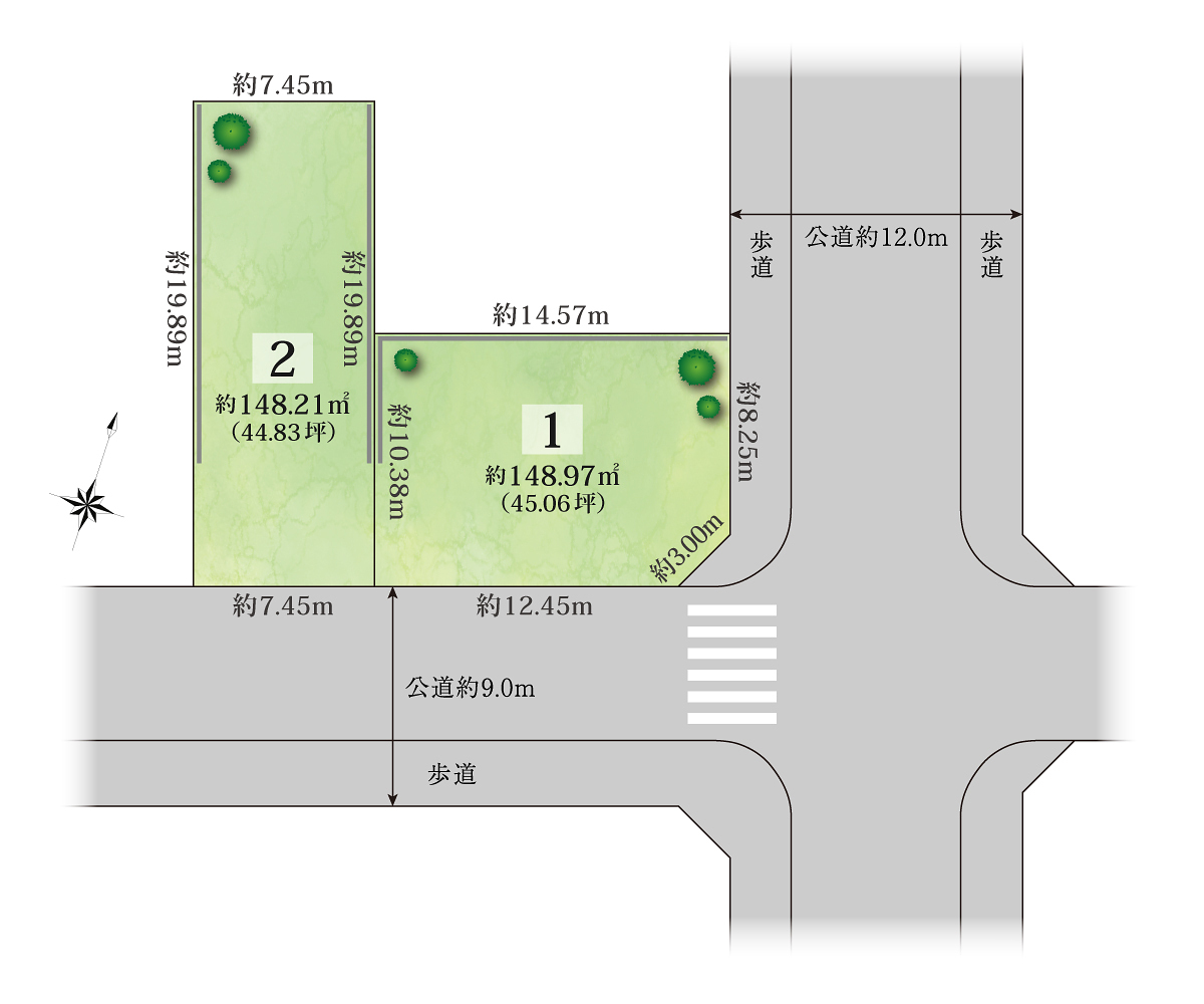 - 幅員9.0m~12.0m※すべて舗装済