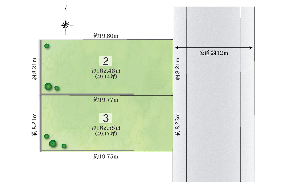 - 2:162.46㎡(49.14坪)・3:162.55㎡(49.17坪)