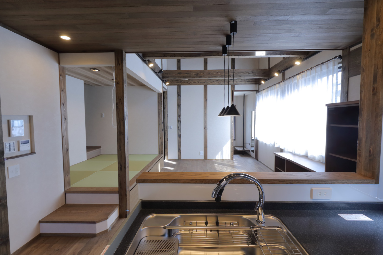 視線が横に広がり、リビングを中心に家族が自然と集まる設計。ほどよい距離感で家族時間を大切にできます。
