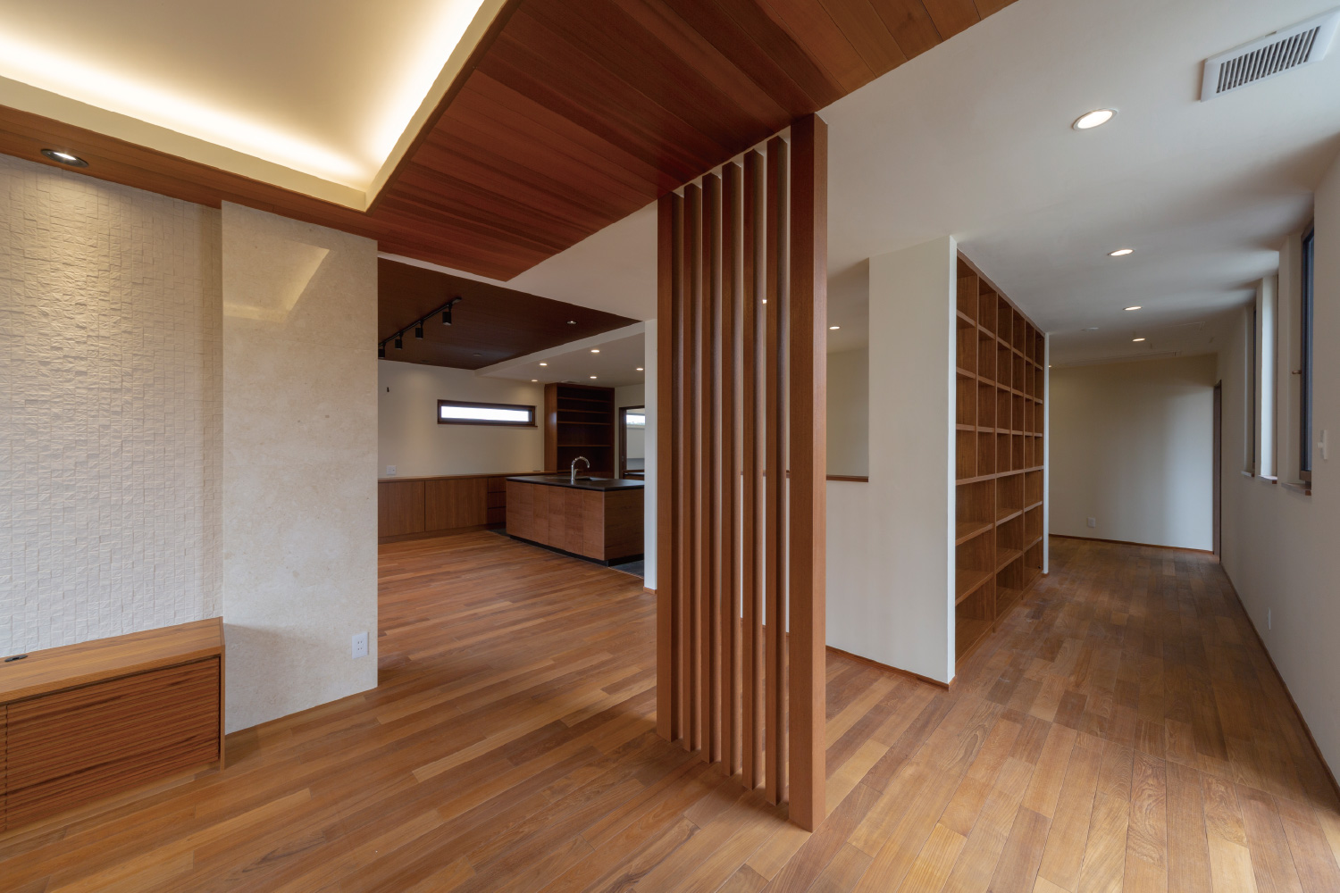 木・土・石といった自然素材には、湿度を整え、室内の空気をやさしく包み込む力があります。一年を通して、快適な室内環境を保ちやすいのも特長です。