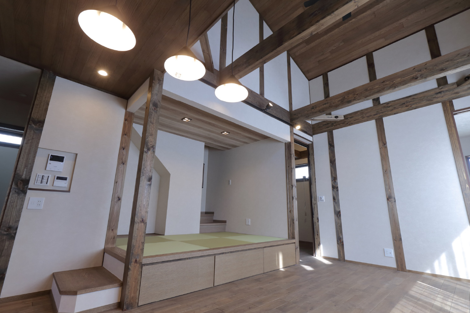視線が横に広がり、リビングを中心に家族が自然と集まる設計。ほどよい距離感で家族時間を大切にできます。