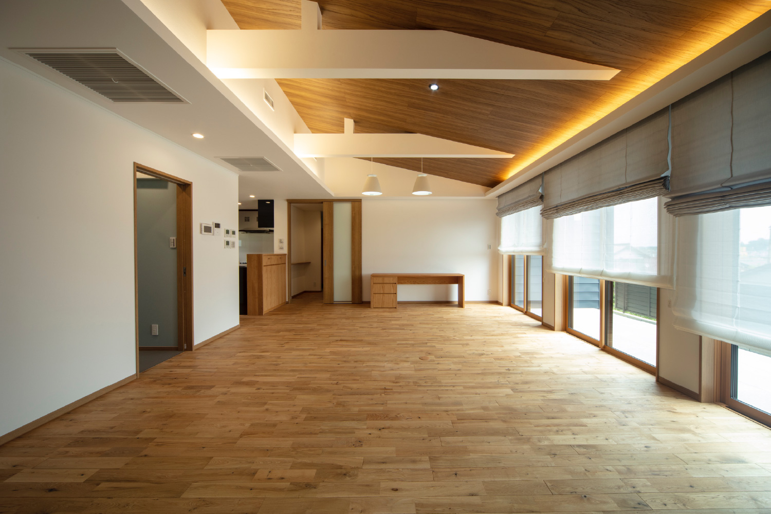 ワンフロアならではの横方向の視界が、ゆとりと開放感を生み、室内が明るく広く感じられます。
